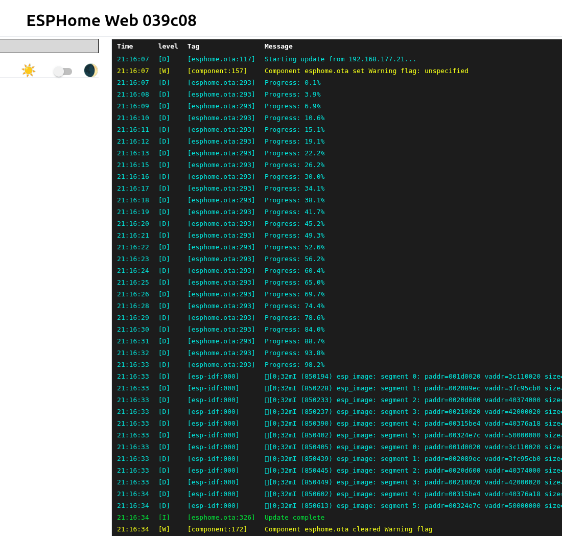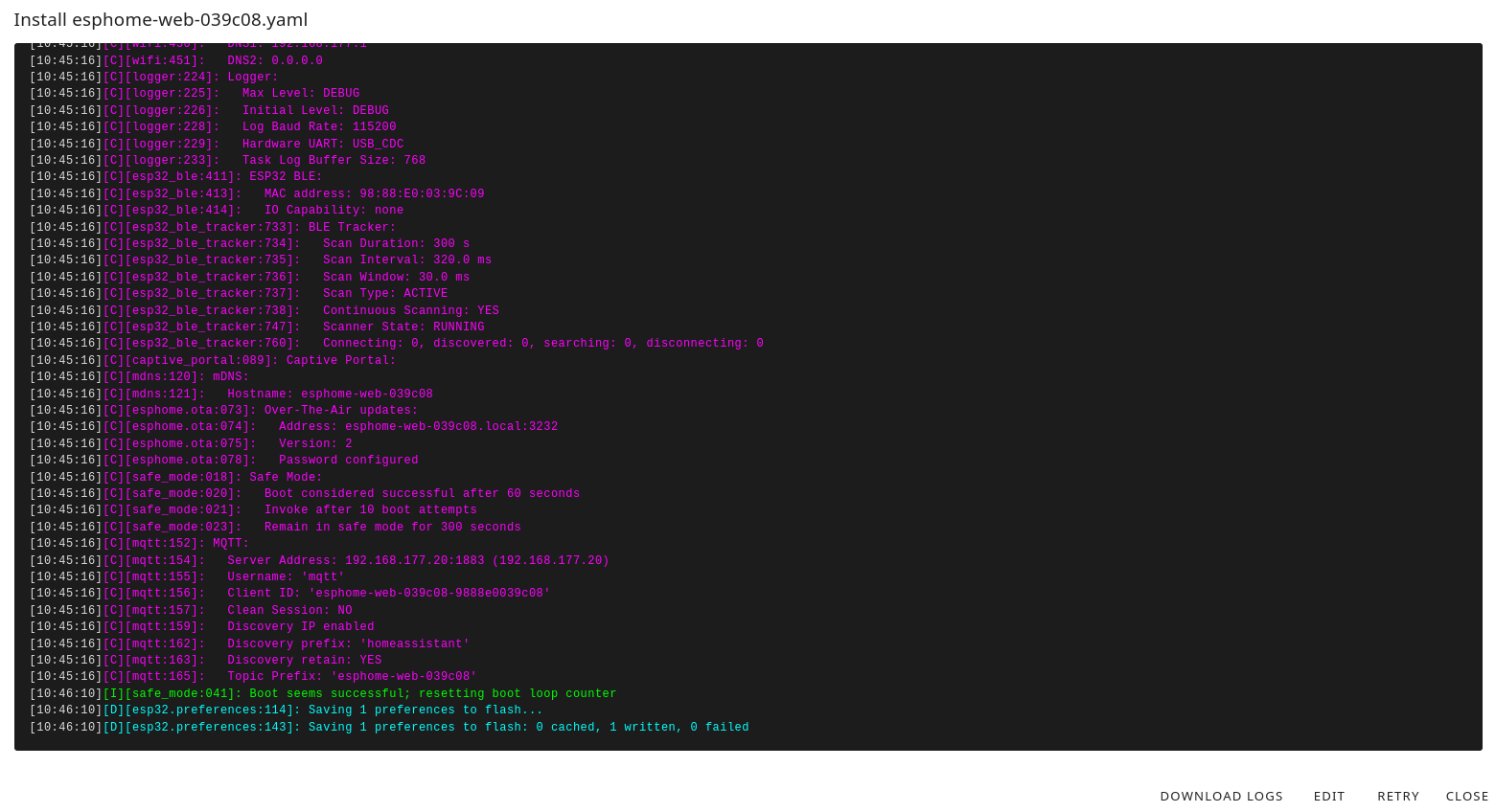 INFO Starting log output from esphome-web-039c08/debug