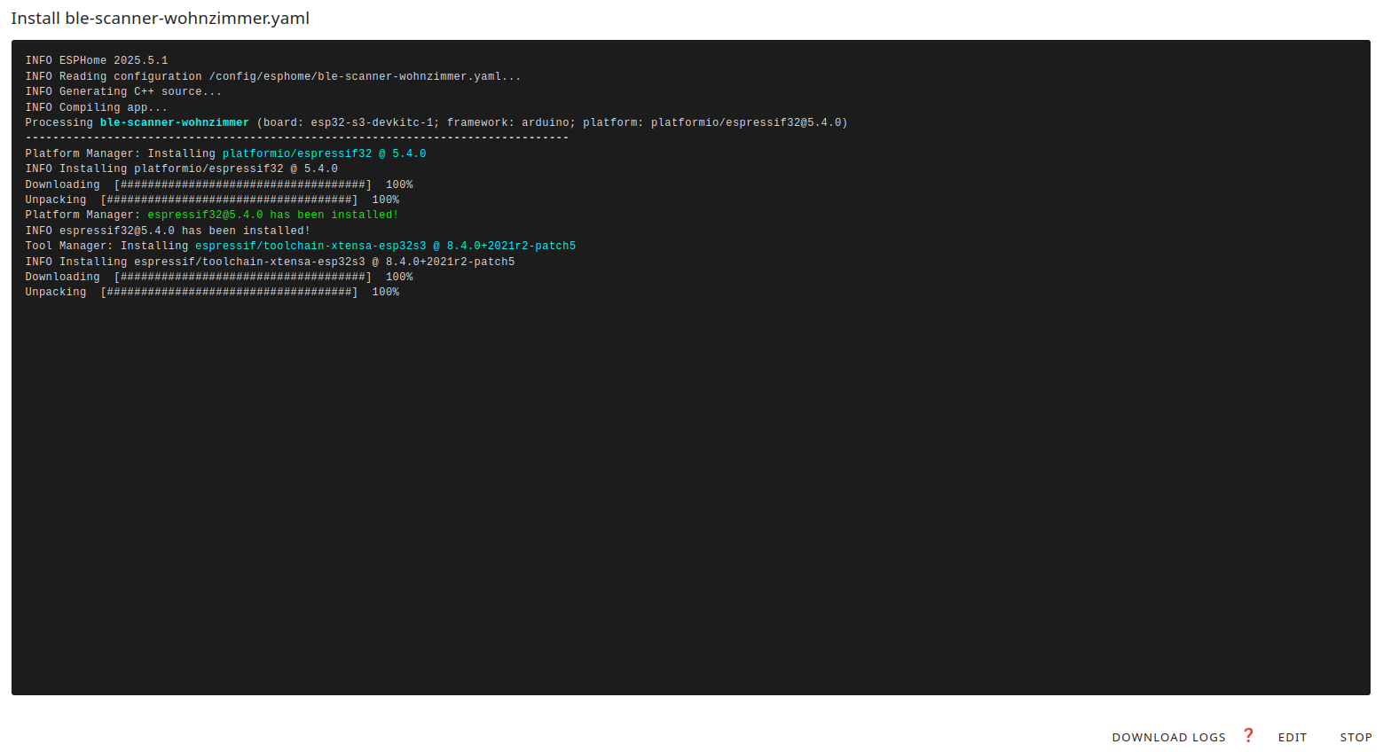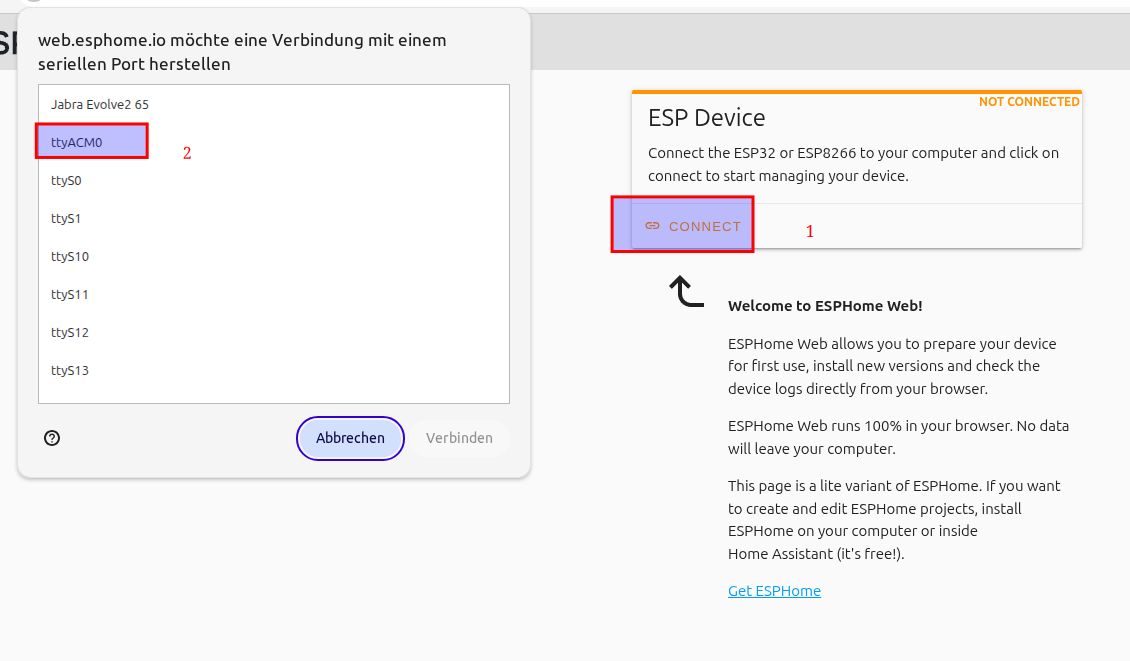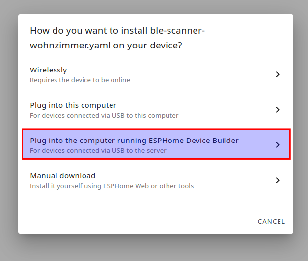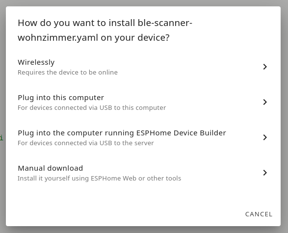 - Auf beliebigen Computer mit Linux und pip per command line (Vorteil Home Assistant unabhängig zum flashen, sonst muss ja der ESP32 an den Home Assistanten angeschlossen sein