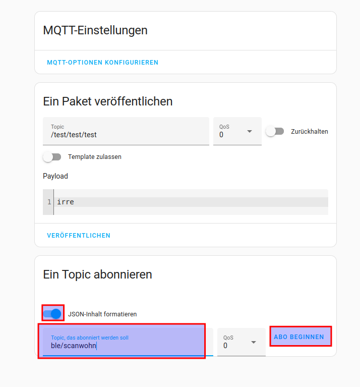 - Den MQTT Topic anpassen der via mqtt gesendet wird.