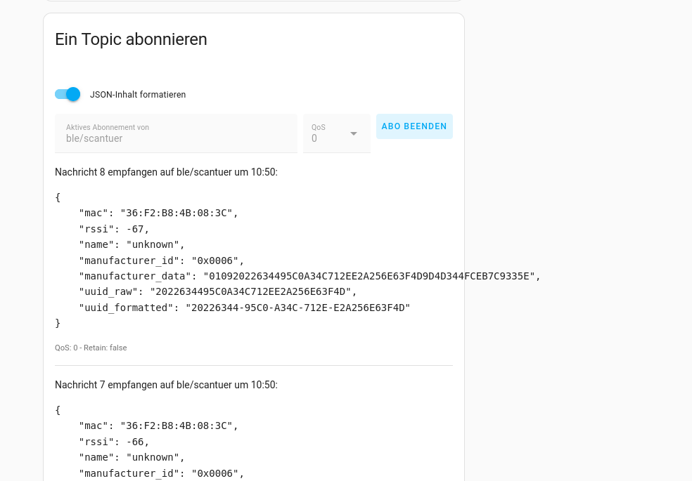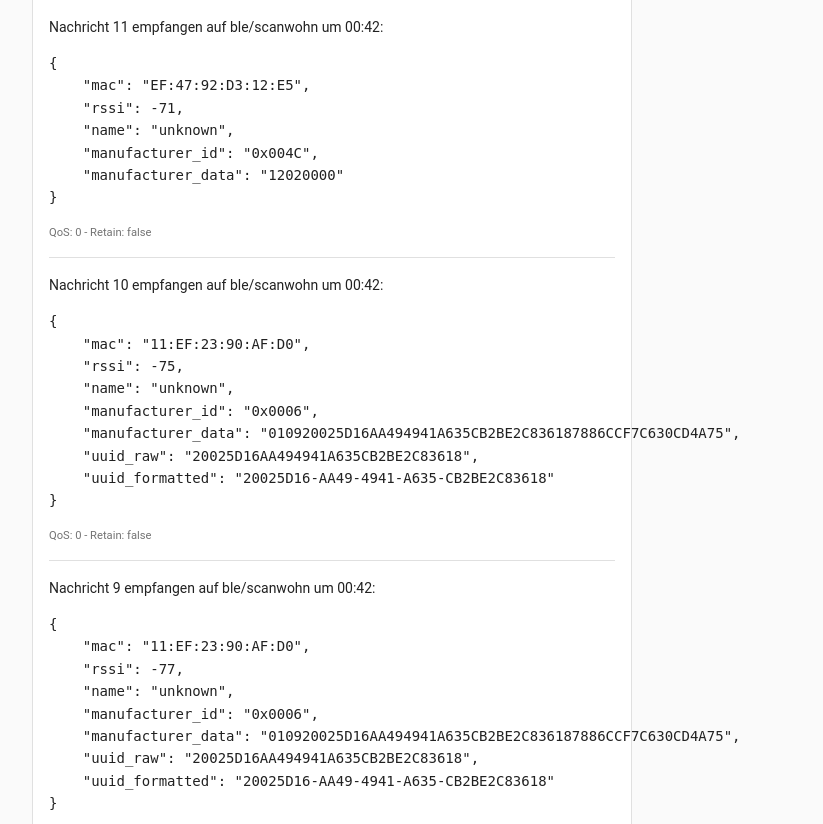 Nachricht 50 empfangen auf ble/scan um 10:21: