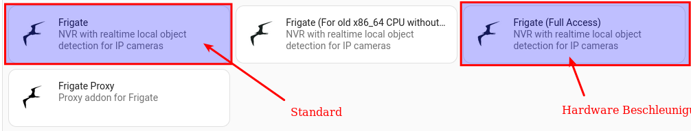 Wir wäheln die Frigate Standard Variante, Full Access wäre für Kameras mit Hardware Beschleunigung.