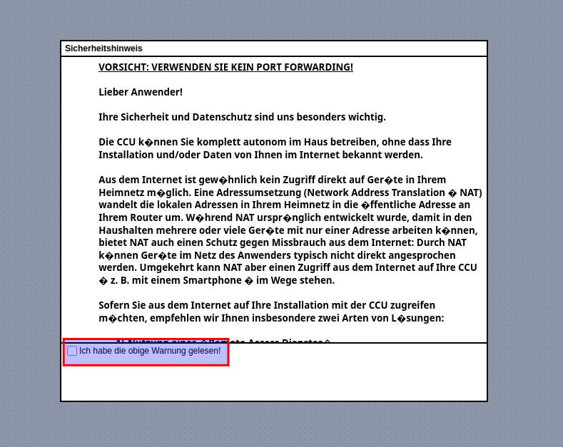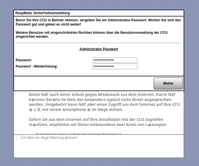 Da wir diese zum ersten mal öffnen müssen wir ein Admin Kennwort vergeben