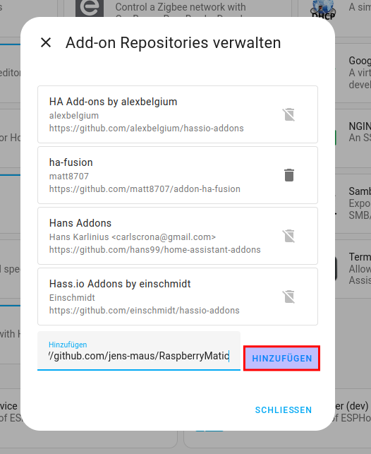 Jetzt steht Der Matic in der Liste. Dann schließen