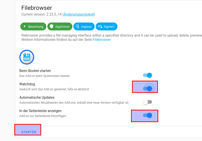 Dann den Watchdog und in Seitenleiste aktivieren.