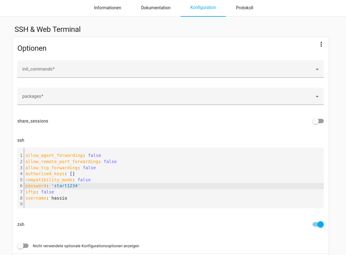 Den benutzernamen hassio habe ich so gelassen. Könnt Ihr auch so lassen.