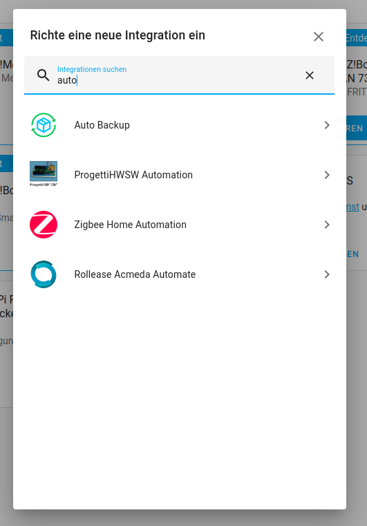 Danach kann die Das Auto Backup über Einstellungen -> Geräte und Dienste -> Integration hinzufügen, hinzugefügt werden wie das HACS selbst. Wieder in die suche auto eingeben und dort erscheint dann Auto Backup.