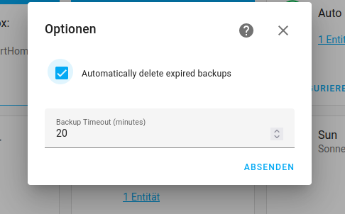 Jetzt kann in der Integrationsliste auf den knopf konfigurieren beim Auto Backup geklickt werden und somit auto backup konfiguriert werden