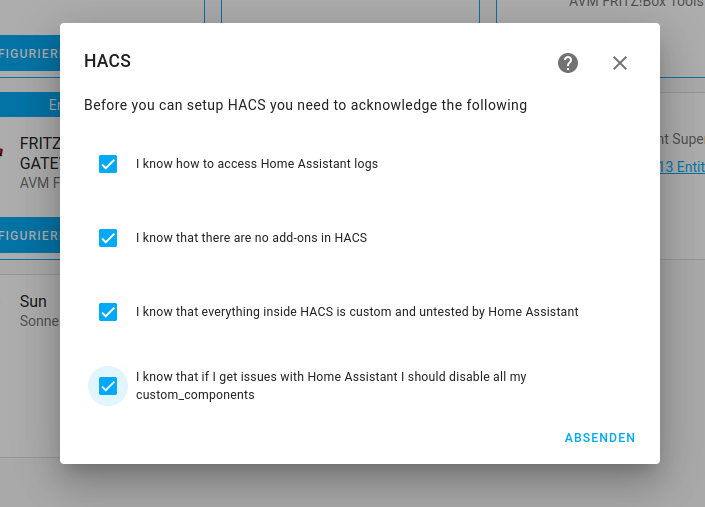 Nun fertig. Und dann zürück auf den Tab vom Home Assistant, denn da gehts dann weiter