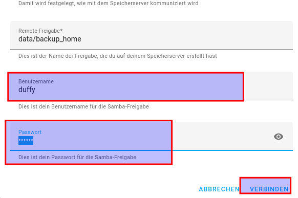 Nun Runterscrollen und Benutzername Kennwort angeben und auf Verbinden klicken