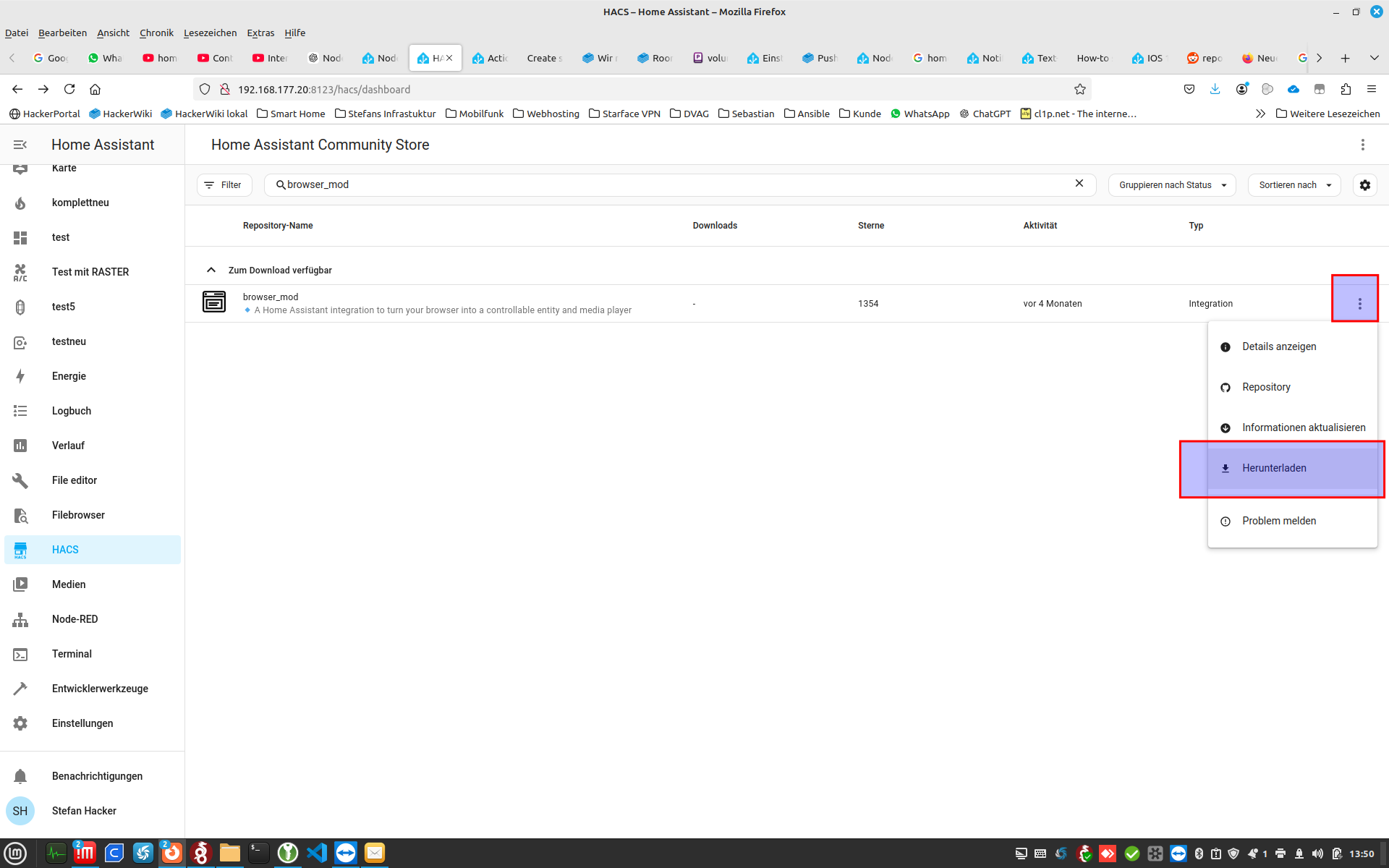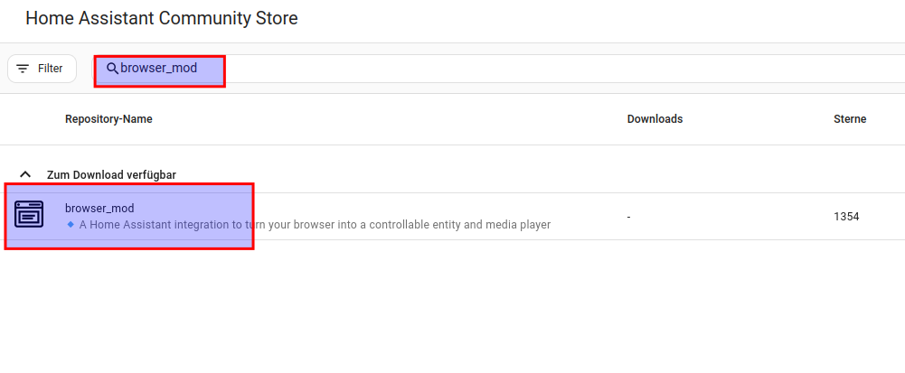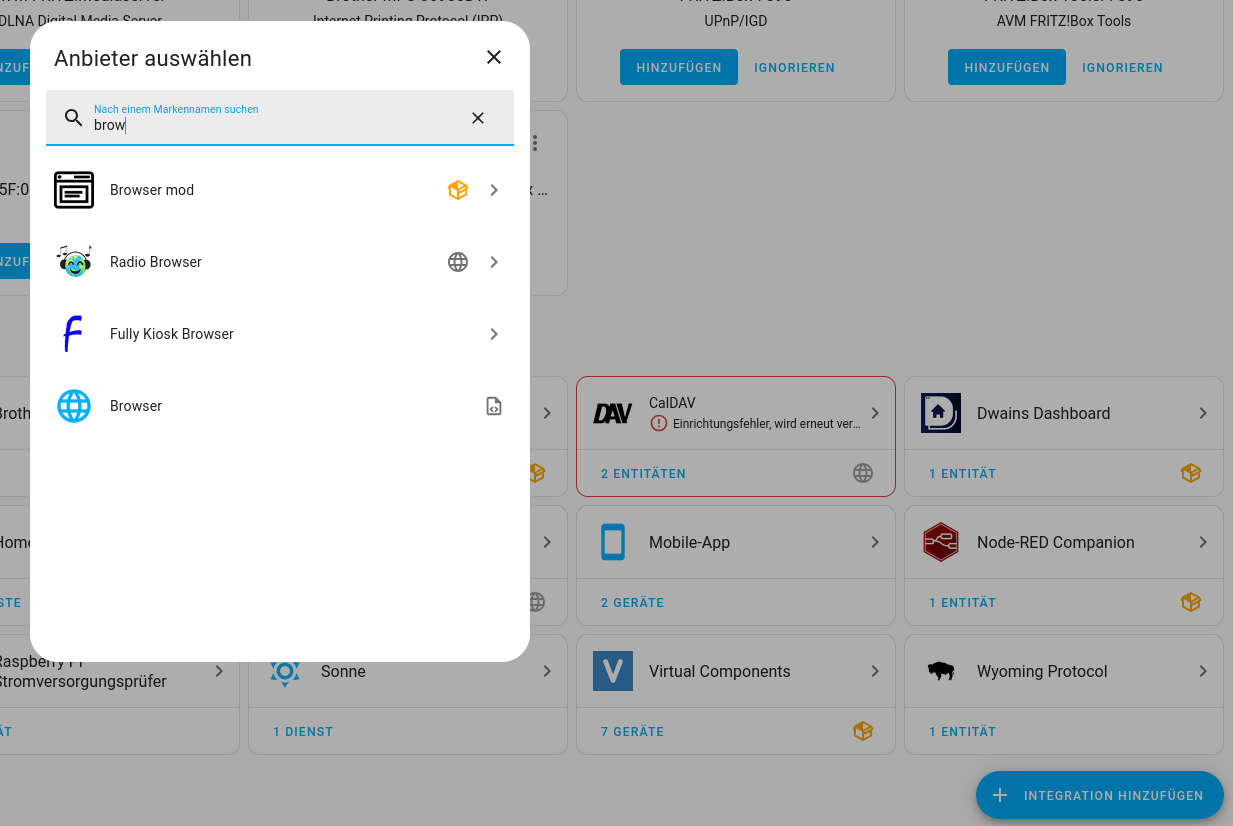 Als Suchbgriff brow eingeben und die integration Browser mod auswählen.