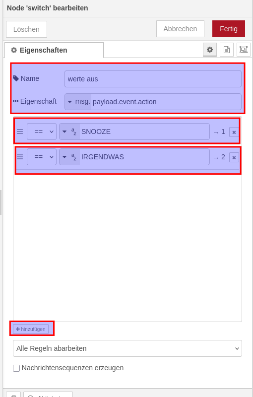 Über hinzufügen können mehrer Werte angegeben werden, jeder ausgang ist für den jeweiligen Wert.