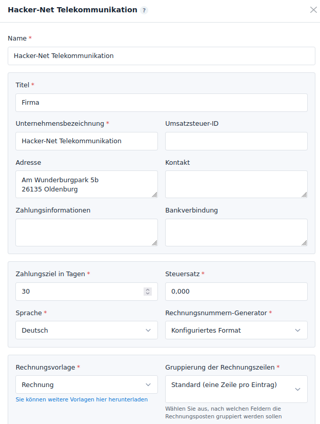 Unter Rechnungen -> Rechungsvorlagen -> Auf erstellen klicken