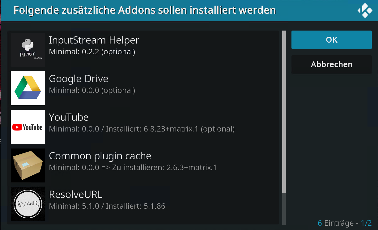 Nun wird das Addon installiert. Wenn fertig gibts den Hinweis