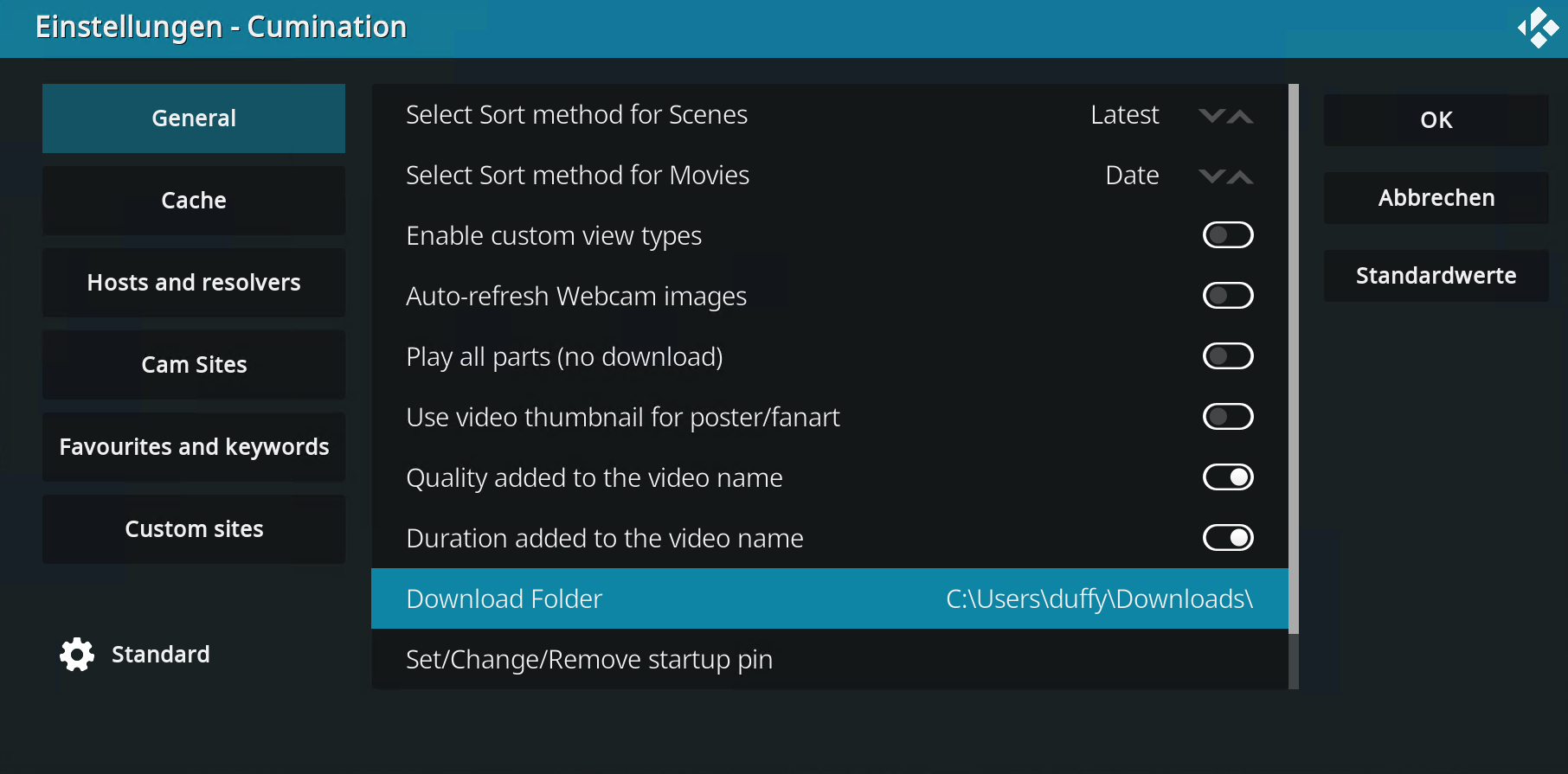 Nun kann man dort den Downloadpfad anpassen. Ich wähle hier als Beispiel den Home Download Ordner. Ihr könnt natürlich jeden Verfügbaren Pfad eurer Wahl nehmen