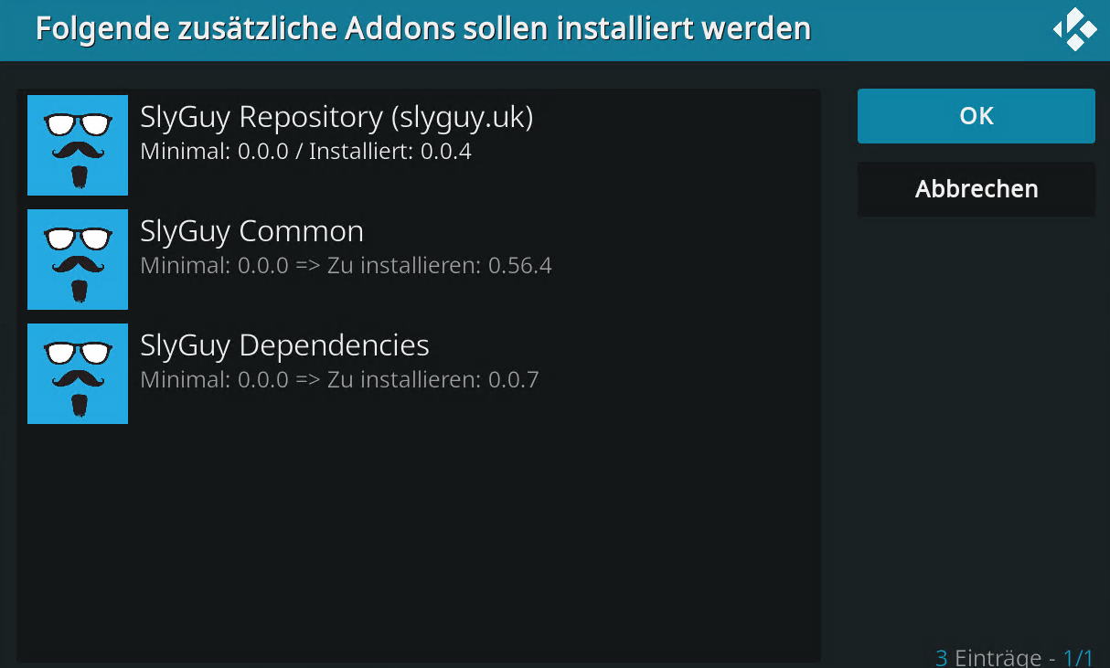Nun die Installation von Abhängigkeiten bestätigen mit OK