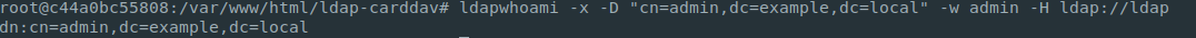 ldapwhoami -x -D "cn=admin,dc=example,dc=local" -w admin -H ldap://ldap