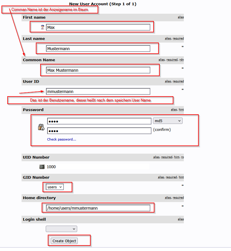 Nun einen Benutzer anlegen vom typ inetOrgPerson
