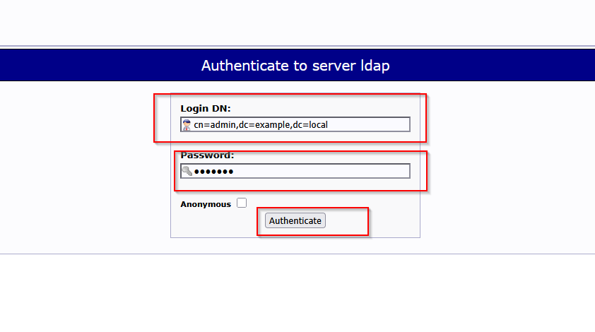 Benutzername aus unserem Beispiel : cn=admin,dc=example,dc=local