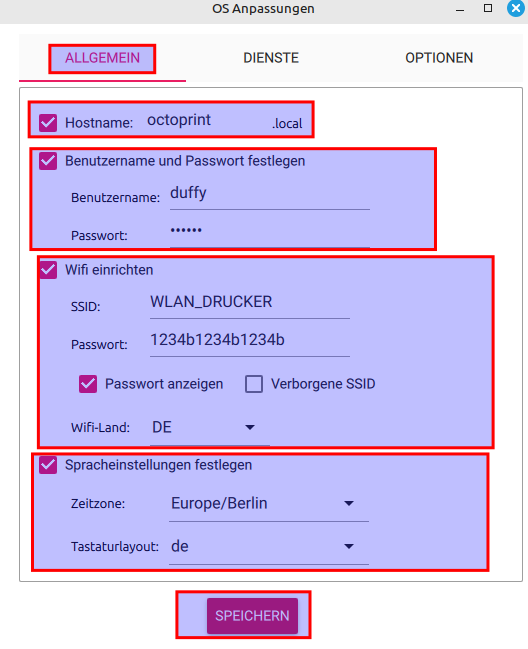 Nun die Einstellungen ändern wie im Screenshot natürlich mit euren Daten