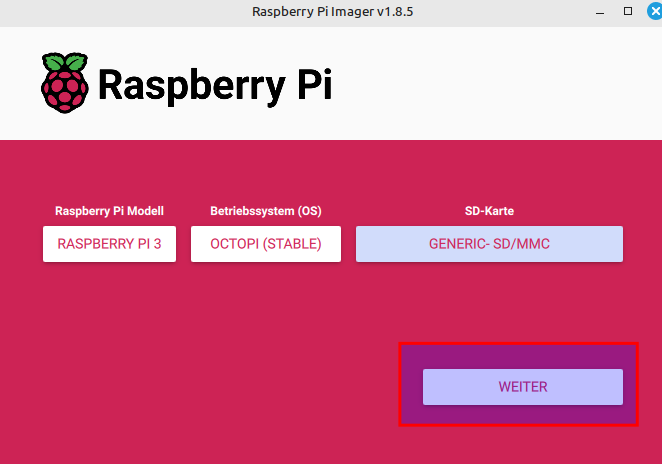 RaspiImager downloaden : https://www.raspberrypi.com/software/