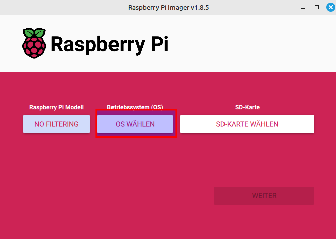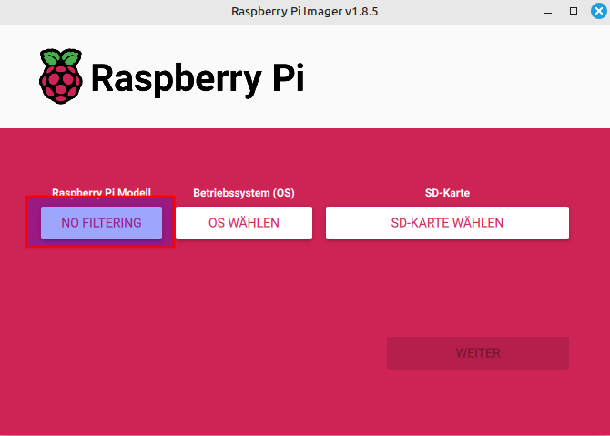 Nachdem es installiert wurde, habt ihr den RPI-Imager im Startmenü