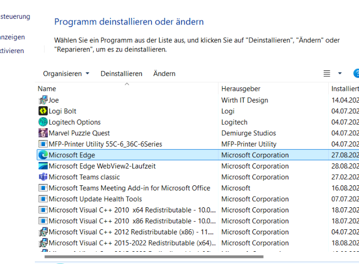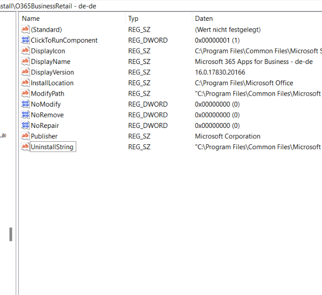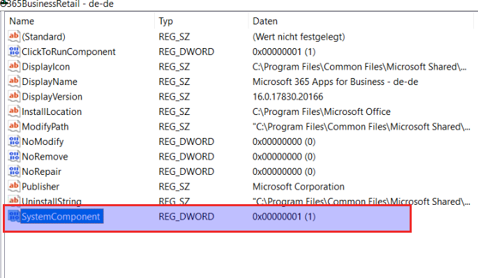 bzw wenns es bei euch ein anderes Microsoft produkt ist dann natürlich dieses, weil Ihr den SystemComponent Wert dort angelegt habt.