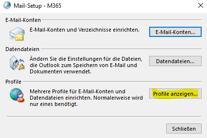 Dieses lässt sich nur noch über Systemsteuerung -> Email ändern, da Outlook ja nicht gestartet werden kann.