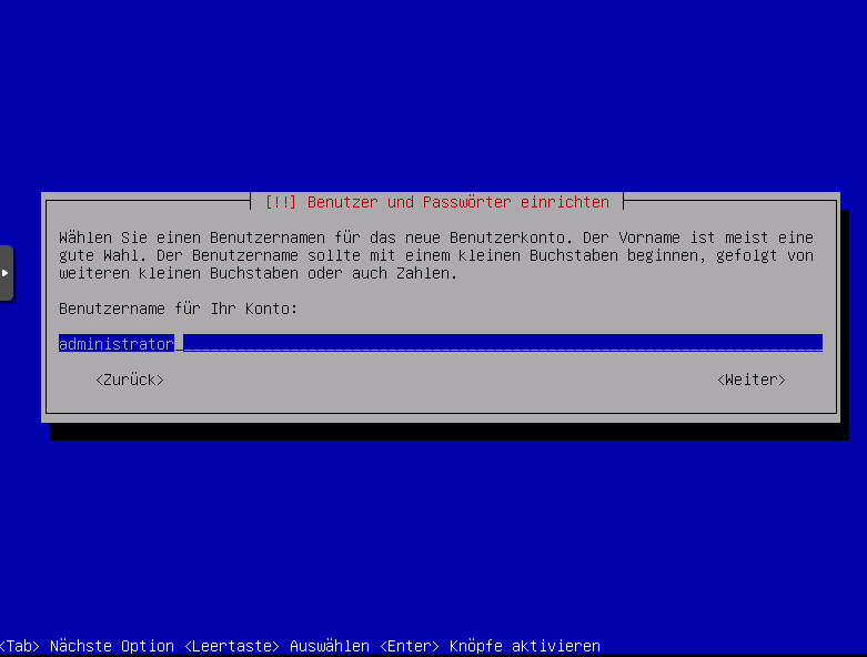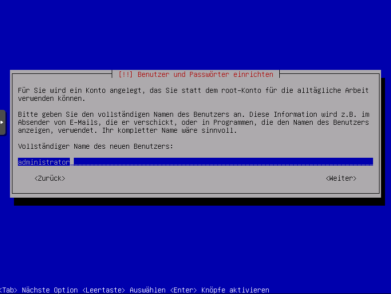 Installation Debian 11 Bullseye (Grundeinstellungen Sprache Benutzerkonten)