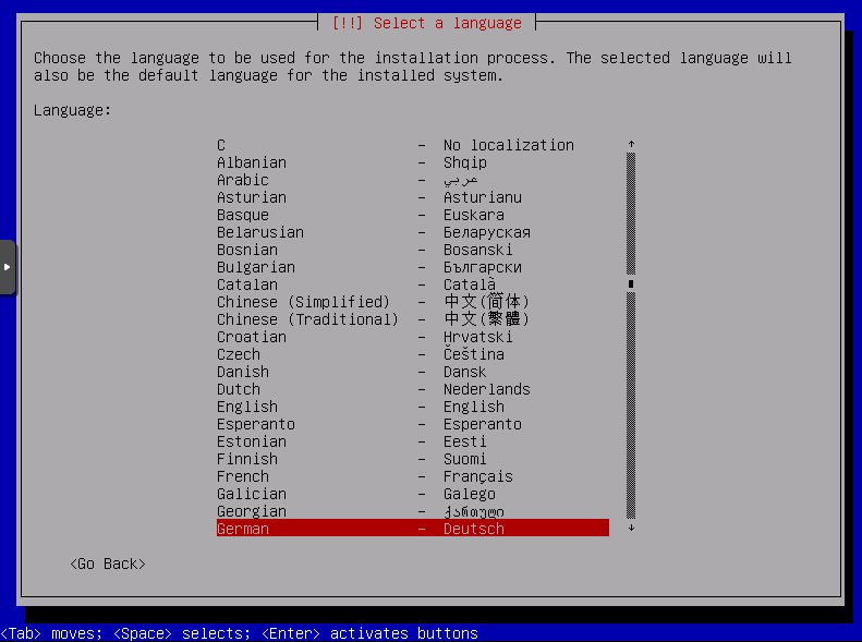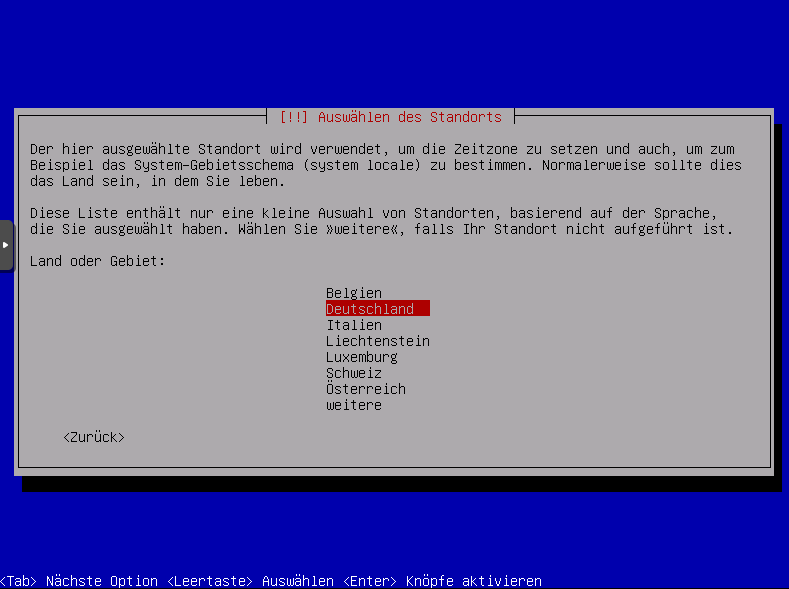 Sprache auswählen, ich wähle hier Deutsch: