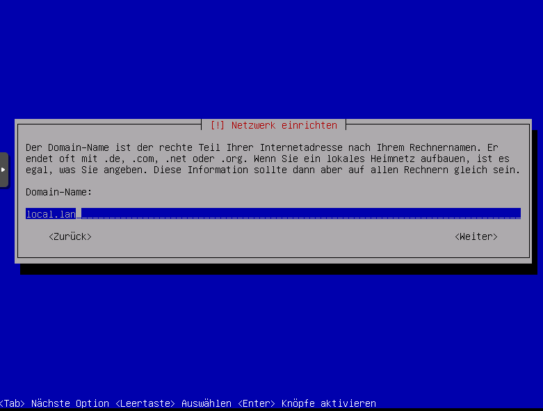 Domainnamen festlegen