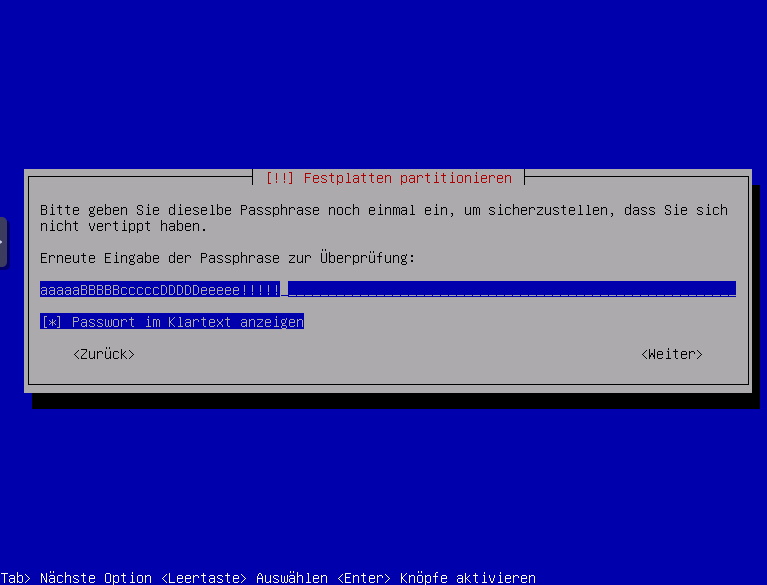 Nach dem neustart steht der Bildschirm zum Passphrase eingeben