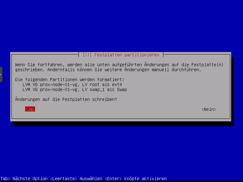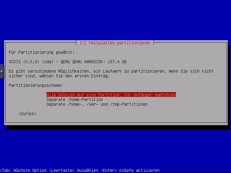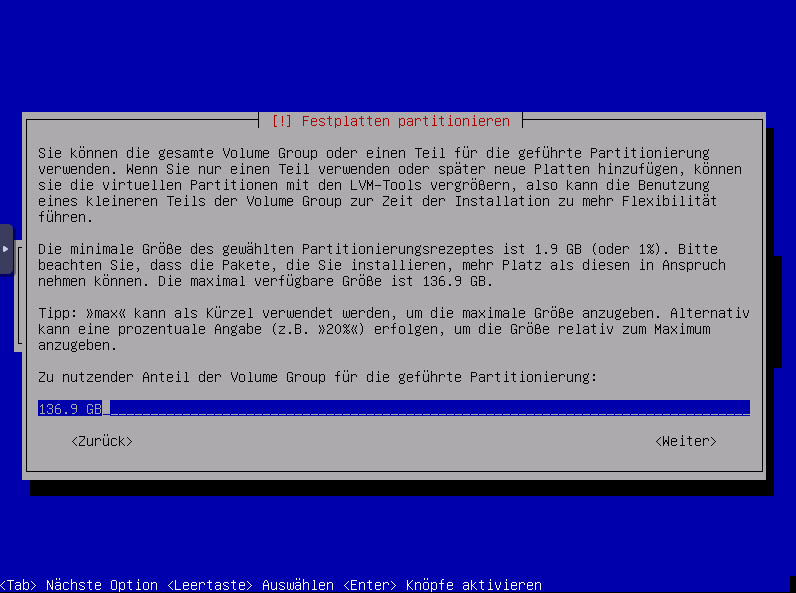 - Soll unverschlüsselt gewählt werden vollständige Festplatte verwenden oder manuell