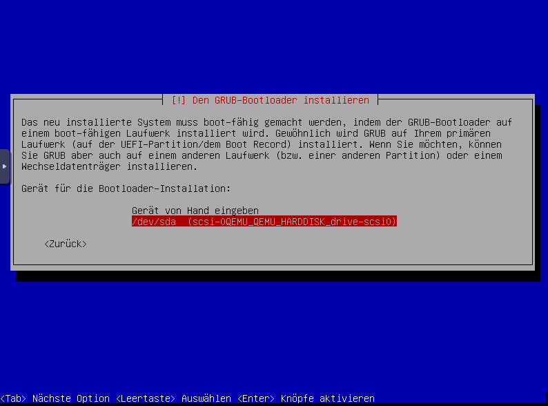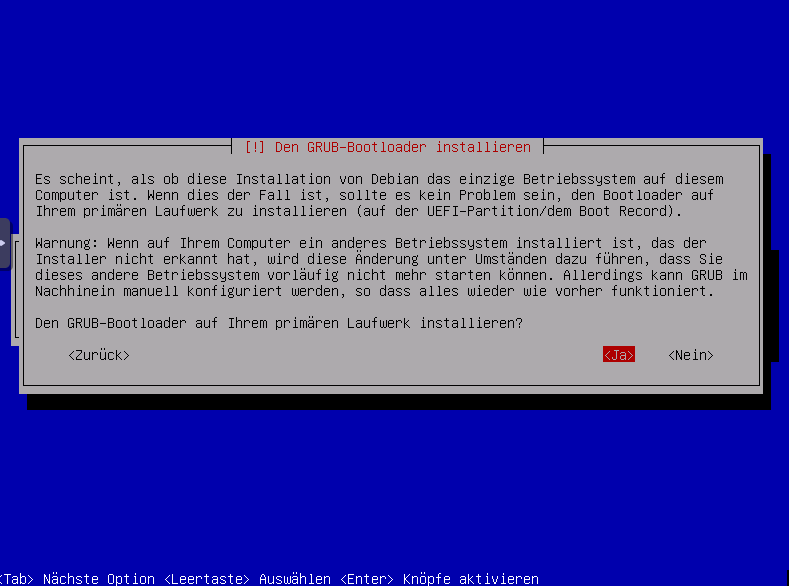 Grubloader auf auf Ihrem primären Laufwerk installieren? Ja auswählen