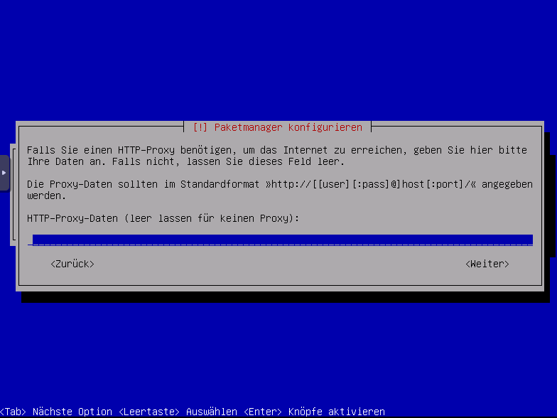 Proxy angeben, wenn vorhanden, hier haben wir keinen Proxy