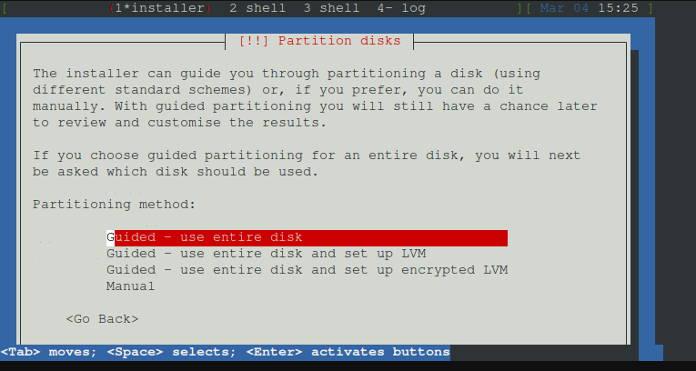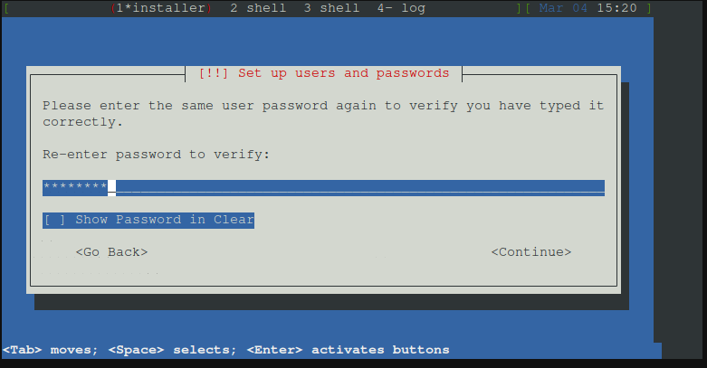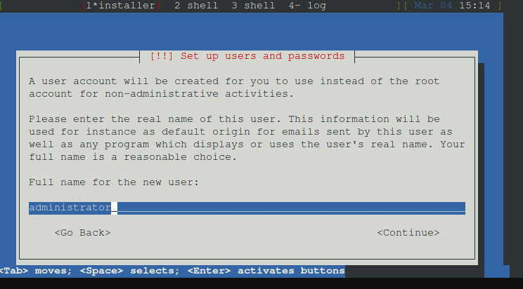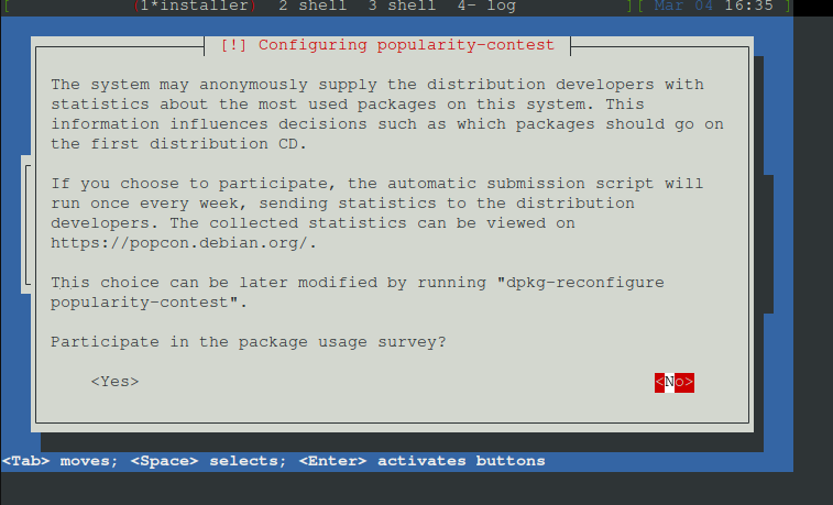 Aber Gott sei Dank ist ETxtmodus Install vorausgewählt.