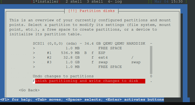 Nun einfach blind enter drücken. Dann kommt finish. Und das System startet mit der CD wieder neu.