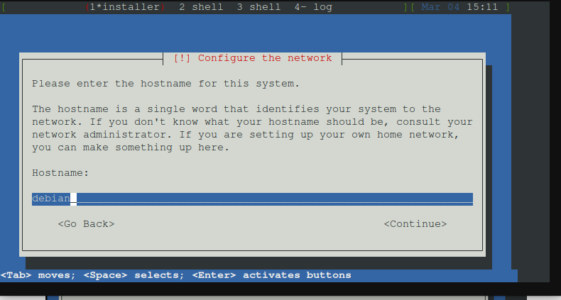 Nun den Hostnamen angeben. Ich lass den bei debian. Ihr könnt eintragen was ich möchtet