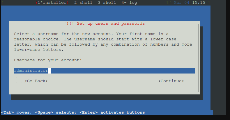 Ich nenne Ihn auch administrator, aber ihr könnt sonst jeden Namen nehmen der vom System NICHT reserviert ist.