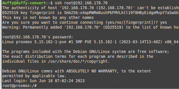 Nun in das root Verzeichnis vom pve-1 chrooten