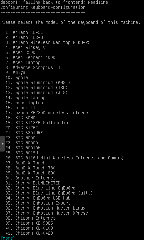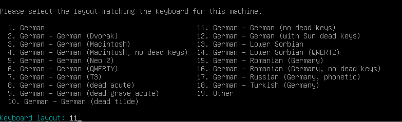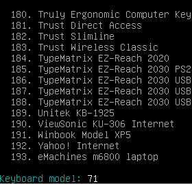 Mit Enter gehts auf die nächste Seite. Ich nehme die 71 Generic 105 intl..