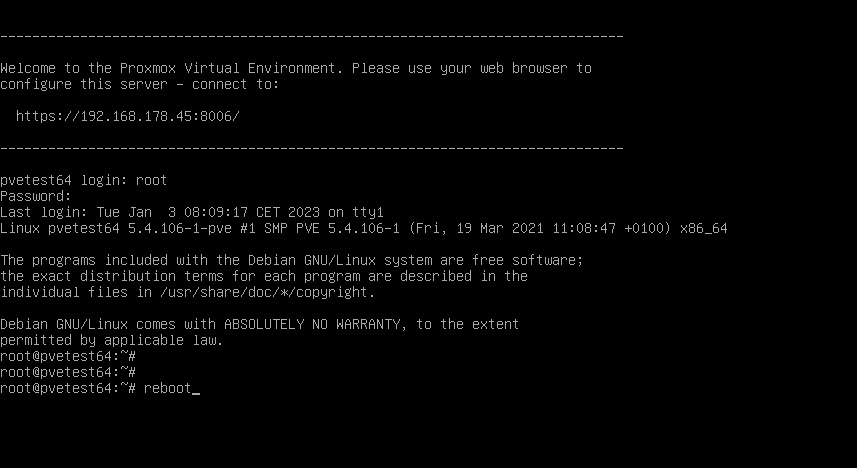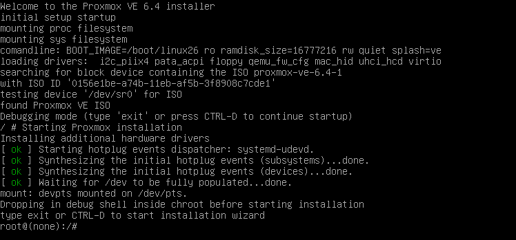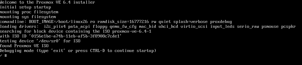 Von der PVE Install DVD/Stick starten und den Debug Mode auswählen.