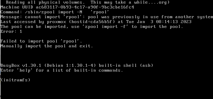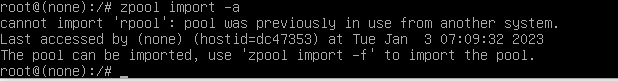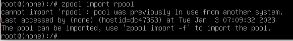 zpool import rpool -f