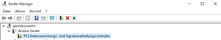 Nun in der Windows VM den Gerätemanger öffnen. Dort sehen wir unter andere Geräte ein Signalverarbeitungscontroller Device.