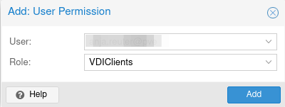 Nun wählen wir unseren User aus und die VDIClients Role klicken auf add, fertig.