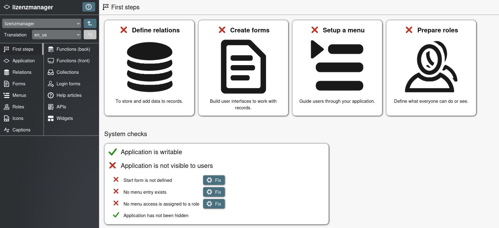 Wir vergeben einen Namen für unsere App, hier "lizenzmanager" als Besipiel