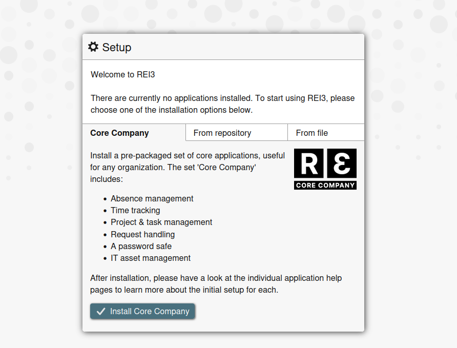 Nach dem Login bekommen wir eine Seite wo wir drauf hingewiesen werden, das es noch keien Apps gibt. Wir könenn Standard apps installieren um Beispiele zu bekommen, oder aus der repo oder unsere vielelicht schon erstellte app aus einer datei.