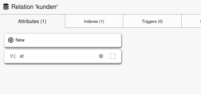 Die Spalte ID wird immer vor angelegt, durck klicken auf new legen wir eine neue Spalte an.