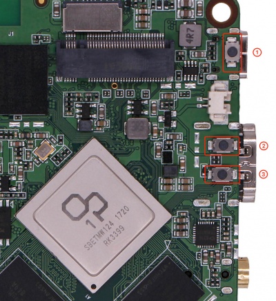 Siehe Abbildung: (1: Reset 2: Maskrom 3: Recovery)