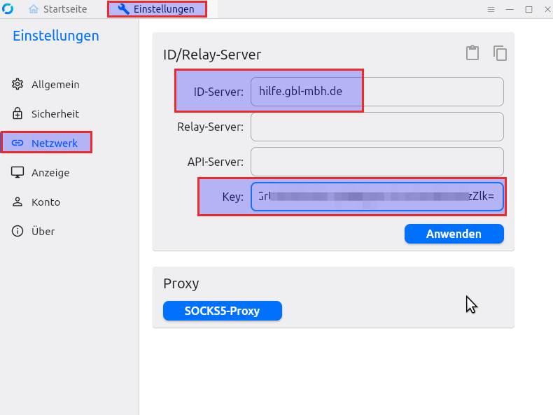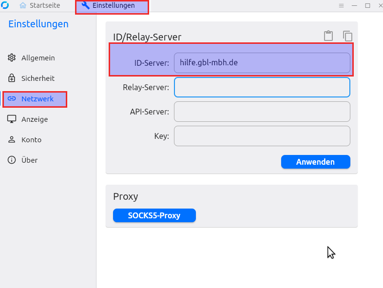 Wenn der Client gestartet ist dann unter Einstellungen Netzwerk gehen.