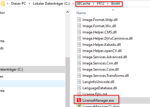 Dieser liegt mm SBCache Verzeichnis\FR12\bin64\Licencemanager.exe